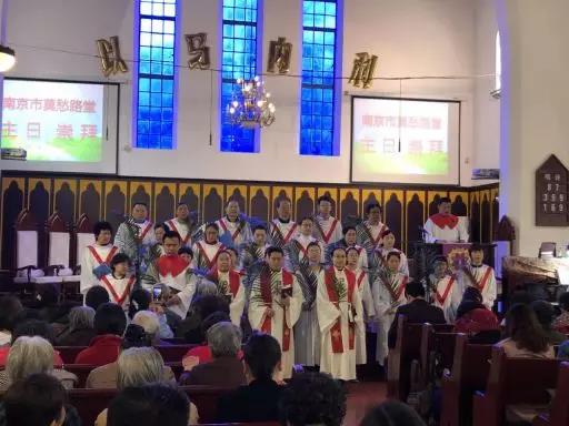 2019年4月14日是今年的棕枝节(棕枝主日),颜色红\紫。今天南京天气晴朗,春光融融。马路边的县铃木(法桐)已绿树成荫。上午7点,9点,南京莫愁路钟声悠扬,南京市基督教莫愁路堂举行了两场棕枝节主日崇拜。