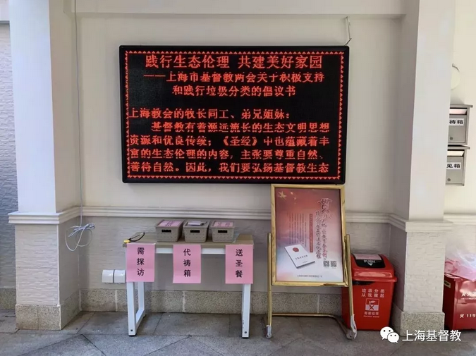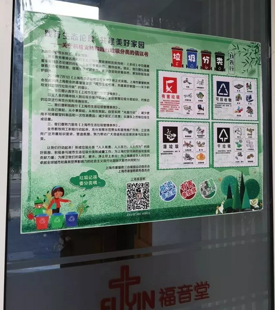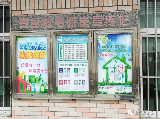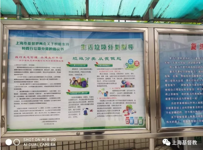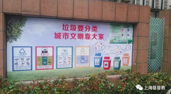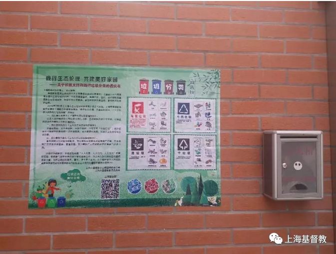 5月20至27日,上海各教堂通过板报、微信公众号等形式开展有关垃圾分类的宣传活动,回应上海市基督教两会“垃圾分类宣传教育系列活动”——一周宣传。