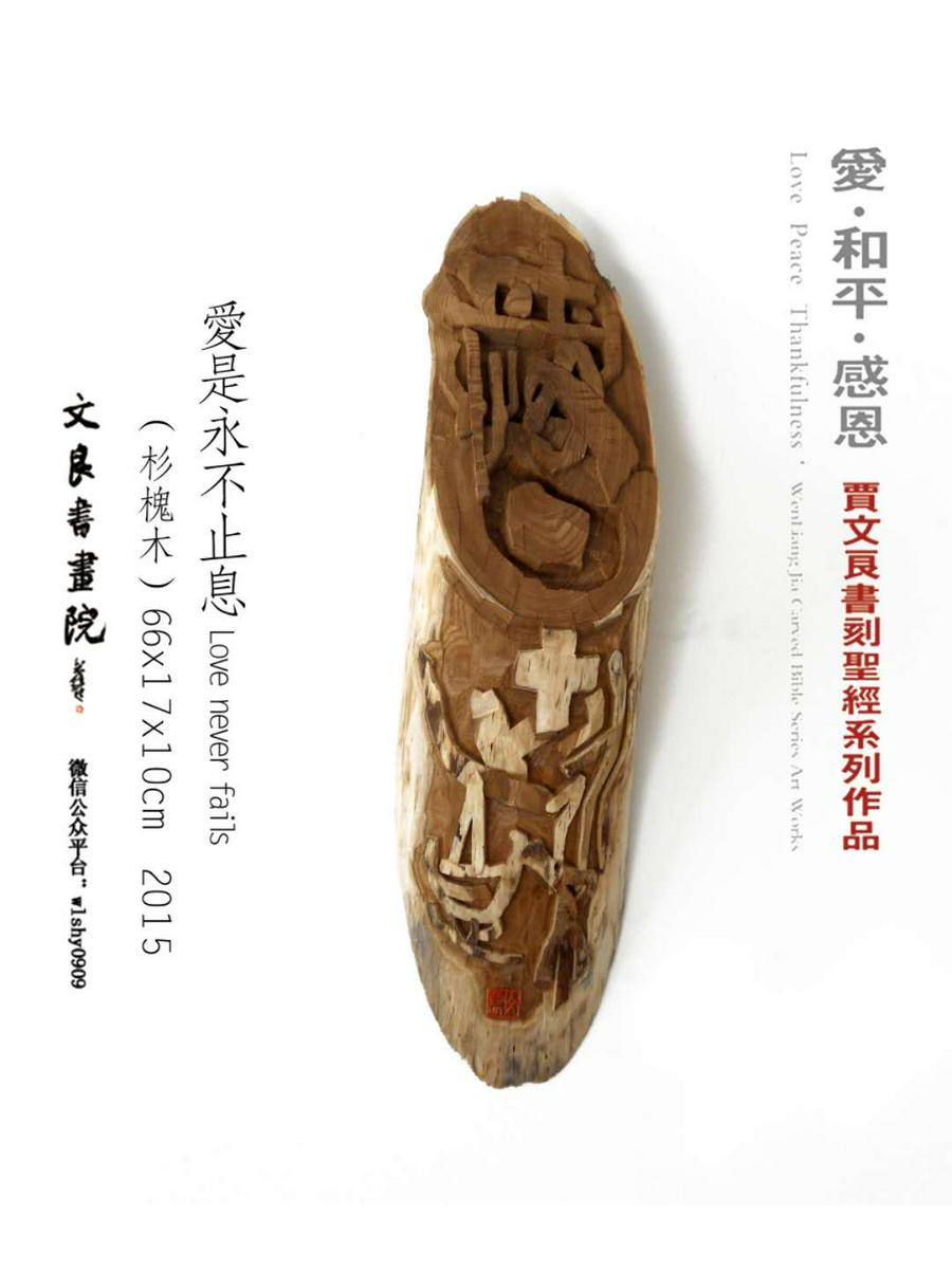 基督徒书刻艺术家贾文良计划于2020年在国内各地举办“愛·和平·感恩"书刻艺术巡展,目前已跟燕京神学院商谈合作,正在寻找更多可以配搭展出的神学院、教堂或者博物馆。