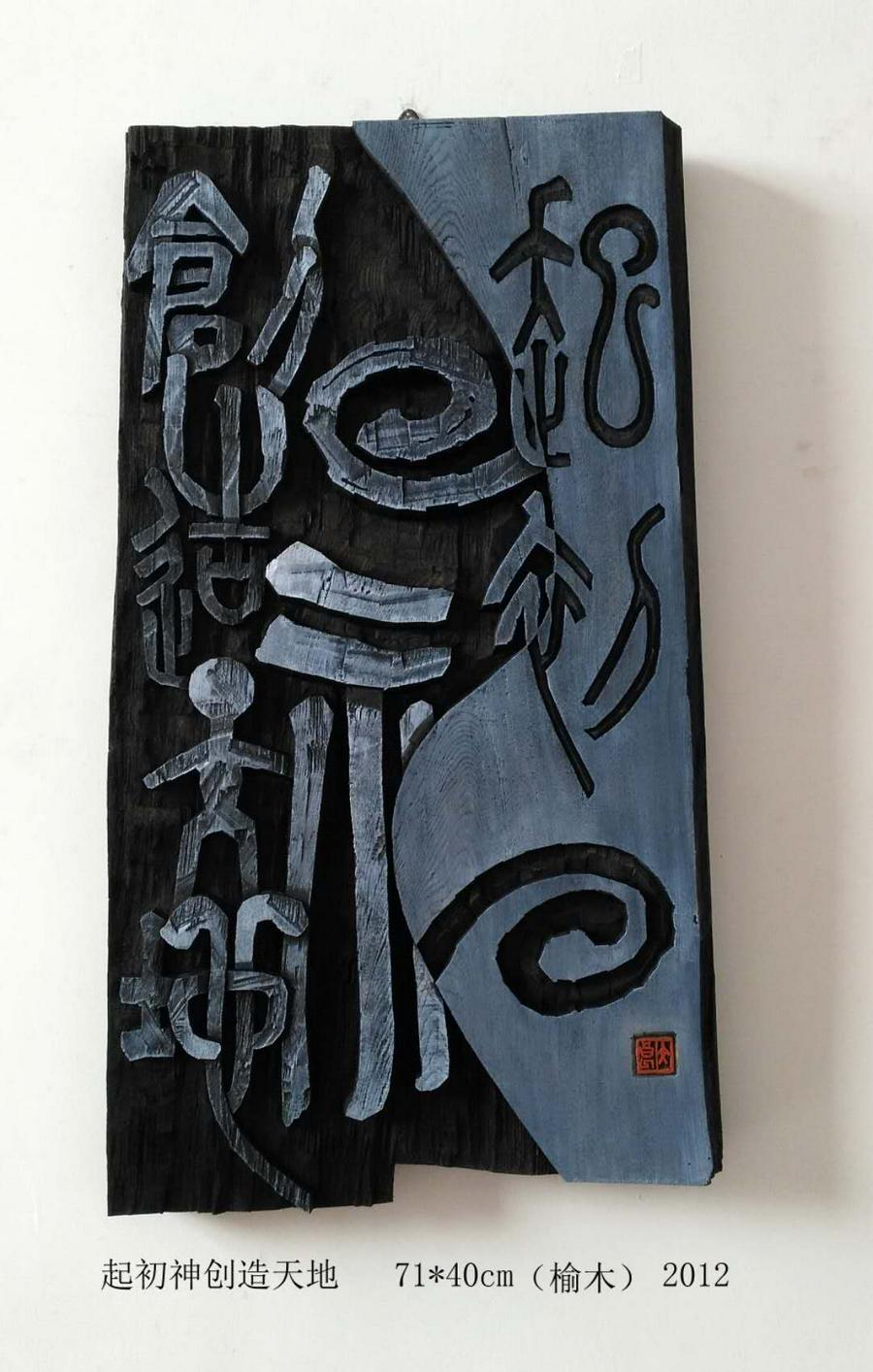 由于对书法的喜愛,我进而对中国古文字的象形表意产生兴趣,进一步研究发现甲骨文、金文的造字结构与圣经创世记记载的人与神之间的事件相关,通过书刻的形式创作积累了一些作品。