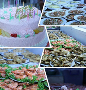 为了筹备本次集体生日会,餐饮部的同工们早早就开始忙碌起来。护理部同工和音响同工、文宣同工,也将餐厅装饰一新:鲜红的条幅、喜庆的生日歌,PPT上播放着以往老人们的活动照片。上午10:00,老人们在员工们的搀扶下,陆陆续续地到餐厅就坐。
