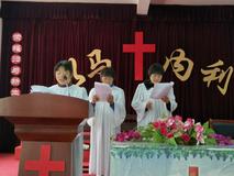 开始的时候,赞美组的姐妹们先带领弟兄姐妹一起唱赞美诗《你走来我走来》《这里有神的同在》《我要开口称颂我的主》《为国求福》《教会我所爱》《求主福佑中华歌》。