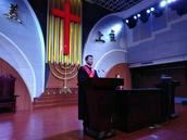 接下来,是谢渊传道带来主题为《守约即感恩》的证道。在30分钟内,一是为大家详细介绍了感恩节的来历;二是依据圣经有关章节,围绕证道主题论述了一、什么是约?二、守约即感恩的丰富内容;三是在结尾时以经文(来12:28)告诉大家:所以,我们即得了不能震动的国,就当感恩,照神所喜乐的,用虔诚、敬畏的心侍奉神。