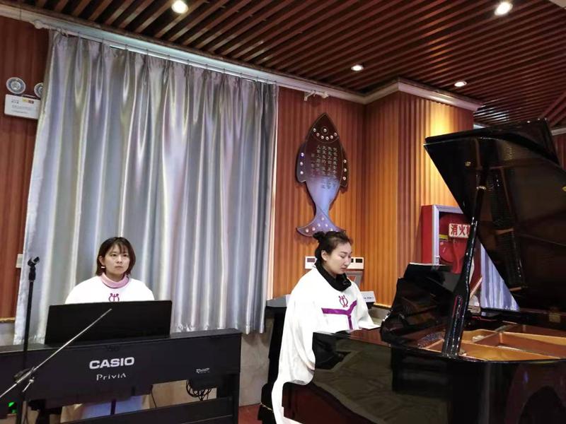 在8:30左右,当笔者踏进曙光教会主堂。里面已灯壁辉煌,温暖如春。主台前的白姊妹,正在为早到的姊妹弟兄教唱赞美诗歌《数算主恩歌》。看,白姊妹满面含春,教的热情、认真;听,会众积极跟唱,学的虔诚、歌声嘹亮!这首赞美诗歌,是由美国美以美会信徒俄特曼(J.Oatman)当年作词,埃克塞尔(E.O.ExceII)作曲来完成的。最初发表在作者《青年之歌》一书中,诗歌内容表达了作者在失望伤感、愁云密布之时,看见晴朗的阳光忽然来到的情感转换,从内心表达对主的感恩之情。《数算主恩歌》这首诗歌被传唱开后,深受世界各国基督徒的喜爱和欢迎。