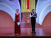 下午14:00,在陈建、孙琪姊妹主持下,开始了大家期盼已久的第三部分的文艺演出。主持人陈建弟兄来了段风趣的开场白,他说:听着刚才曙光特赞队的感恩赞美,看着眼前台下欢腾海洋,我的耳旁浮响起圣经有关篇章。大家说说,是哪一章、什么内容?台下会众一齐喊道:“诗篇第150篇”!