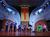 第5个节目,是东片区带来的器乐合奏《奇异恩典》,只见九位弟兄姊妹手执着口琴、萧笛、琵琶等不同乐器登场了。开始表演的是一位姊妹表演独唱赞美,接着是两位弟兄进行的双人口琴演奏,最后是所有器乐合奏……他们的精彩表演让大家目瞪口呆,昨天普通的他们,今天竟能演奏出如此即悦耳动听的赞美乐曲。这是神的恩典,让他们化平凡为奇妙;这是神的大能,使他们由泥土被幻化成如此有用的器皿!