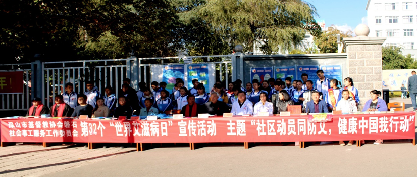 保山市基督教协会积极引导基督教团体、信教群众与社会主义相适应,推动社会服务。为提高人们对艾滋病的认识,回应世界卫生组织及国家对“世界艾滋病日”的号召,每年的12月1日都举行防艾宣传活动。今年的12月1日是第32个“世界艾滋病日”,宣传活动主题是“社区动员同防艾,健康中国我行动”。