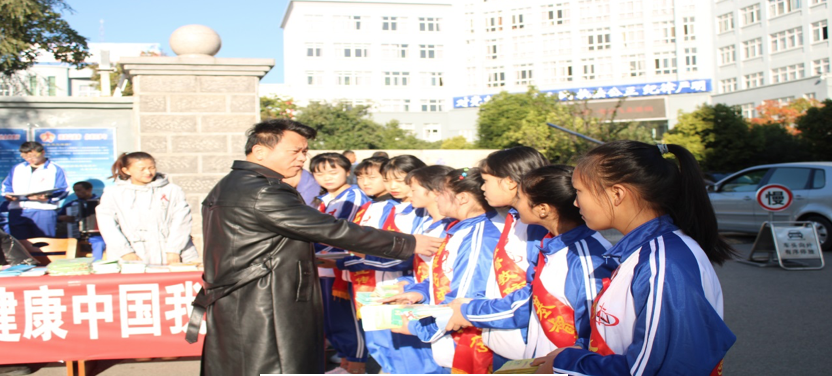 十一月三十日上午八点半,市基督教协会组织在车管所门口举行宣传活动,有市民宗局领导、市基督教协会领导、市疾控中心领导、市基督教培训中心全体师生、市基督教协会磐石社会事工部全体同工、区政协领导、九隆街道领导、南园社区领导、北关教堂长老及信徒代表参与。活动时间持续了3个小时,发放宣传材料《预防艾滋病你我共参与》、《早检测·早治疗·早受益》、《情系红丝带爱在阳光下》、《夕阳无限好健康最重要》、《李博士谈艾滋》、《预防艾滋病健康全家人》、《健康生活每一天》、笔、鼠标垫、日历、防艾宣传围腰、避孕套、防艾宣传手提袋等资料共计20000册左右。活动期间前后有500余人前来领取资料、礼品,各领导、同工积极介绍防艾相关知识,此外,派保山市基督教培训中心学生50余人发放宣传资料,前后直接受益人数约1500余人。