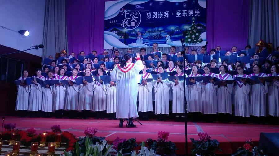 又是一年平安夜,华灯初上,喧嚣的闹市车水马龙,地处临汾市尧都区解放西路何二胡同基督教会城区堂灯火辉煌,彩灯闪烁,高耸的圣诞树和精心装饰的圣台,花团锦簇,熠熠生辉,洋溢着一派欢乐祥和的气氛。来自四面八方的信众欢聚一堂,堂内一层二层座无虚席,大家共同唱响平安颂歌,共度平安良宵,纪念耶稣降生。