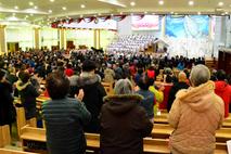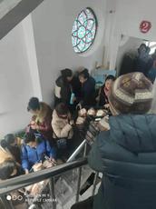 证道结束后,圣诞赞美会热烈开幕,绿化街全体服侍人员合力为庆祝耶稣基督诞生,献祭了一台由22个精彩节目集合的圣诞祭。中午为看圣诞祭的信徒准备了午餐面包。教堂大楼五层,四层会场做无虚席,需要发放的面包数量很大,这些都是需要提前运送上楼然后发放的,最让我们感动的是,只有教堂的服侍人员来运送是不够的,在圣灵的感动下,其他会众都自觉加入到面包从一楼到四楼的传送工作中,这场景着实让人感叹圣殿中圣灵带动众人同工的伟大力量。