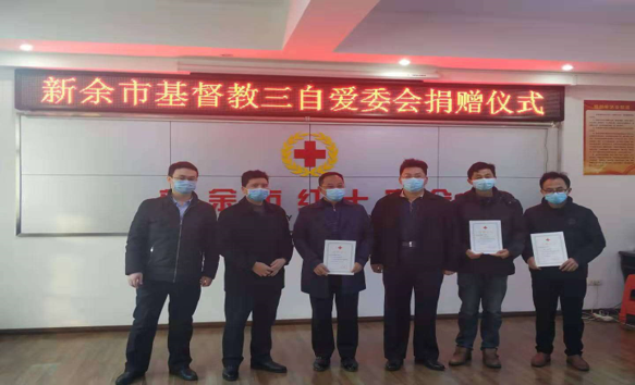 高新区基督教三自爱委会密切关注疫情防控工作,积极宣传和动员全区各堂点为此次疫情防控奉献爱心,1月30日经市委统战部徐徕水局长联系、林军贵副局长、王淞科长和市基督教两会主席会长李云根牧师的带领下向新余市红十字会捐赠人民币一万元整,经高新区党群工作部肖喻林副部长联系、廖慧群主任的带领下向高新区慈善总会捐赠人民币一万五千元整,共计捐赠人民币两万五千元整用于抗击新型肺炎疫情。