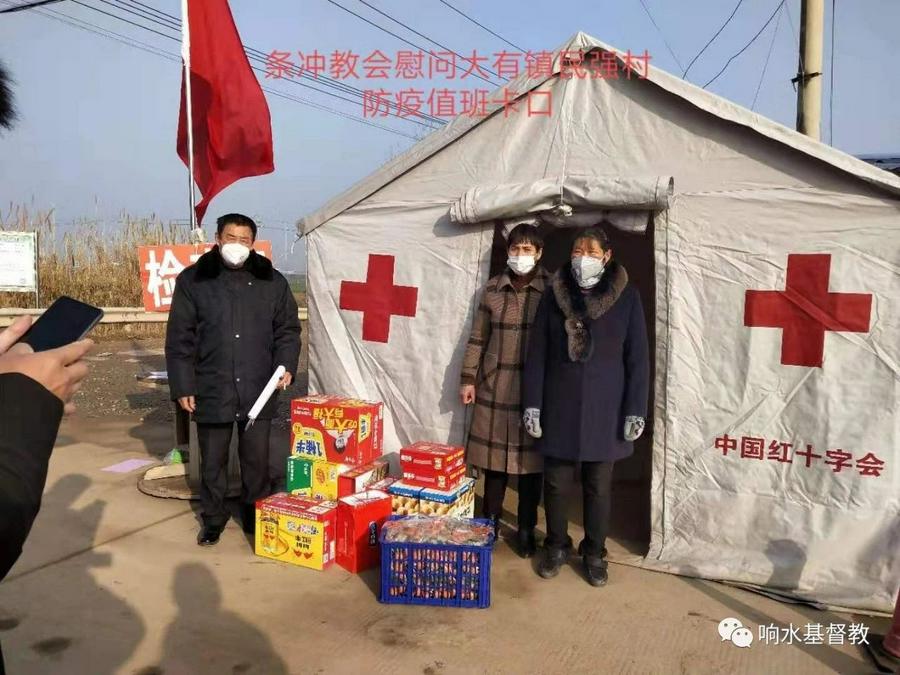 六套教会、大有条冲教会、淮河教会、七套民生教会于2月13日开展疫情防控检查点慰问防控人员活动。