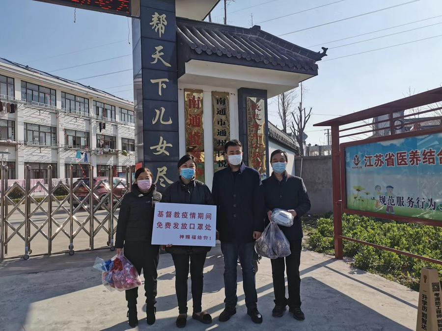 2020年3月5日,江苏省金沙基督教堂,堂务委员会为在疫情期间仍然坚守在工作岗位的一线人员,各部门单位送去爱心口罩,并为南通市和通州区的养老院、各小区、社区送去口罩和慰问品。
