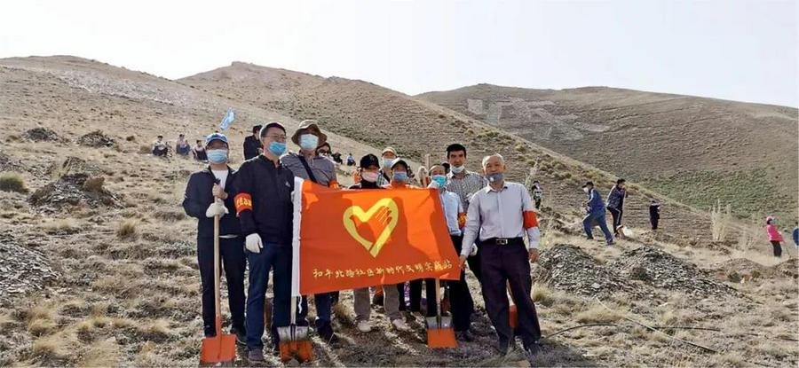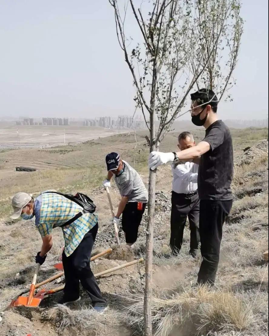 按照分配的任务,几位弟兄很快进入角色:挥锹铲土、挖坑植苗、围堰培土……弟兄们各尽其职,有秩有序,配合默契,在花儿沟山坡上与天山区各界、各族人士用心栽下每一棵树苗,期待来日绿满荒山!