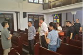6月15日,江苏省民宗委巡视员郭志清、省文物局巡视员殷连生的带队下一行7人,赴宫巷基督教堂调研文物保护情况。苏州市民宗局副局长张建国,苏州市基督教两会主席、会长何介苗牧师及市文物局相关领导陪同了调研。