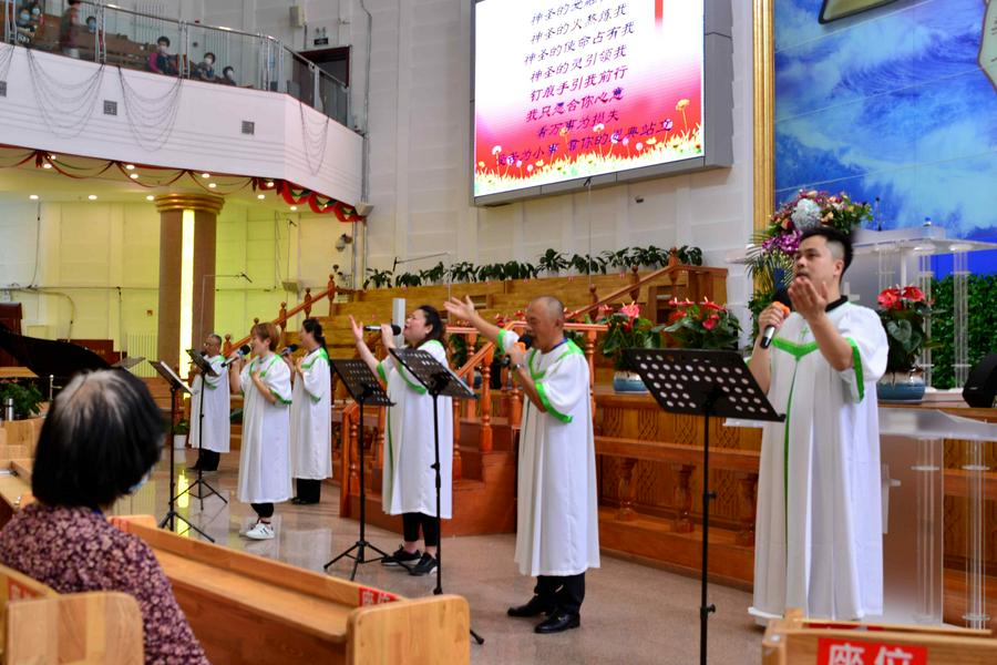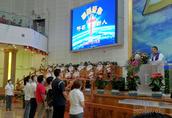 此次丰收堂复堂后的第一场主日聚会,是会众们期盼已久的日子,教堂主堂一楼的聚会大厅基本坐满了前来聚会的信徒。大家在同工的带领下读经、祷告、歌诗赞美。上午九点三十分,在诗班的圣乐、圣诗和会众的瞩目中,大连市百合基督教堂刘坤忠主任牧师身着圣服,喜乐、庄严的走向圣台。当全场竖立高歌“世界上最伟大的诗歌”《圣哉三一歌》的时候,笔者落泪、哽咽了,伟大的三一真神真的圣哉!