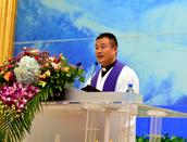 刘坤忠牧师带领会众读经祷告,并为主证道。刘牧师以旧约创世记第12章为中心,向信徒传讲面对环境要有准确地预判,思想我们自己,面对各样的选择仰望神,神会帮助我们,必不会缺乏什么。