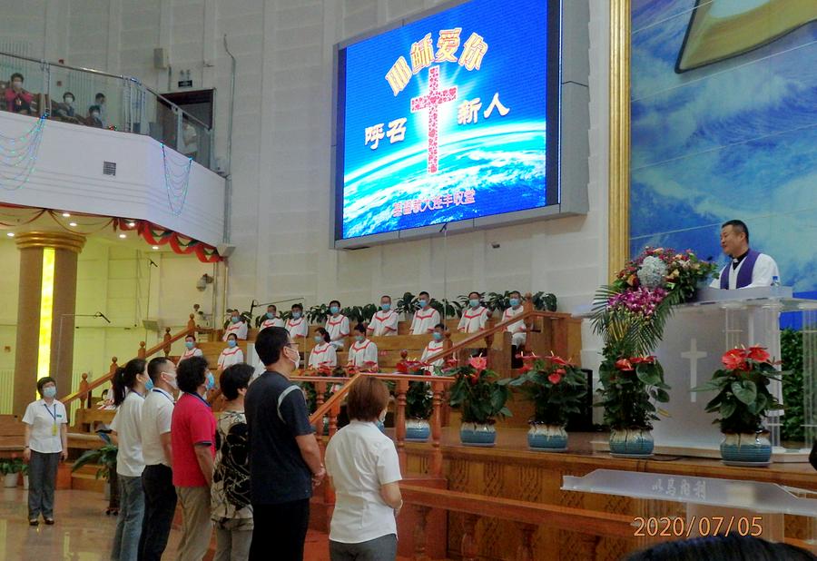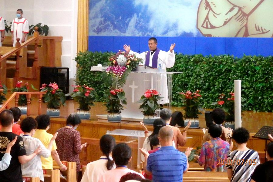2020年7月5日礼拜日,笔者在主日早晨七点钟出发,来到大连丰收路教堂。在教堂主堂外面,负责的同工按照测试体温、察验身份证、出示健康码、出示行程卡、填表登记等程序严格把关;参加聚会的信徒积极配合教会的服侍同工指挥,依次持卡进入教堂主堂,并按规定遵守保持距离、不握手、不聚堆交流等纪律。