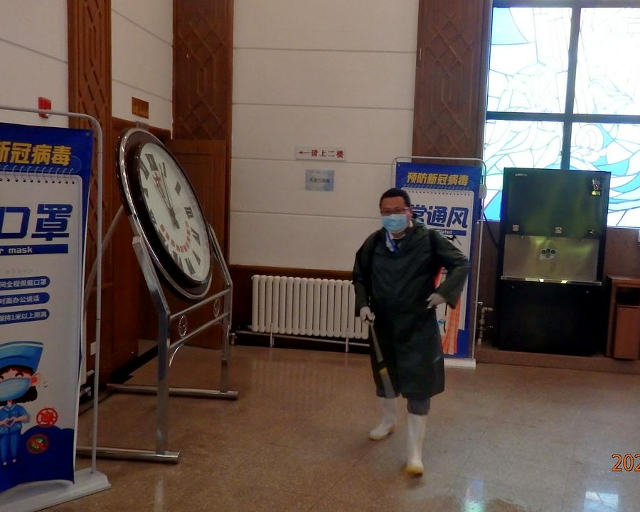 聚会结束后,教会的工作人员开始对台上台下、座椅、走廊等进行全面的消杀,服侍的同工开始整理主堂。