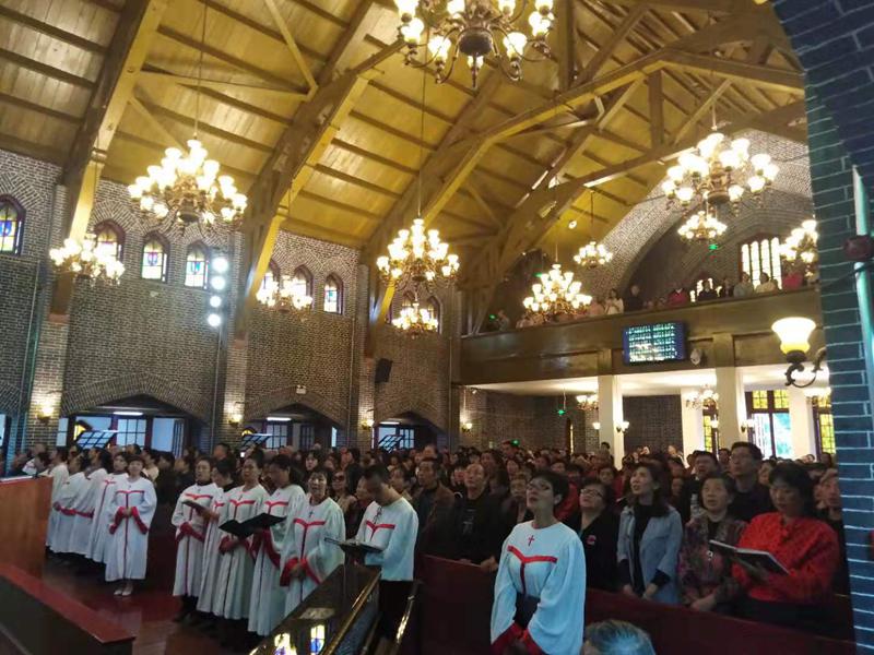 第二天2020年7月26日礼拜天,第一堂上午9:30开始。崇拜主领:张正翔传道;证道:张桂莲传道,讲题《神佑中华》,经文:路19:41-44;诗36:5-12;诗班颂诗:《求主福佑中华歌》《神佑中华歌》《神工妙笔歌》;崇拜聚会开始前由吴平文同工教唱赞美诗歌,司琴由陆明远牧师完成。
