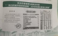 4月28日,浙江省血液中心、杭州市献血服务中心联合在《都市快报》以“我们的城市因您而温暖”为题,整版推出2019年团队献血光荣榜。萧山区宁围街道新华基督教堂、杭州基督教崇一堂、富阳基督教思恭堂、杭州小羊教会及杭州基督教思澄堂分别以135、54、43、31及27名献血人数,而荣登“爱心团队”光荣榜。他们为这座城市带来了“杭州温暖。”