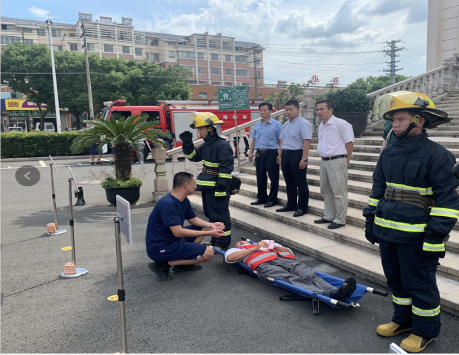 经检查确认,“被困伤员”为中暑状态,经过合理处置后,消防中队详细讲解中暑的处理方法。