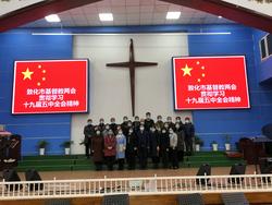 11月11日,吉林省敦化市基督教两会召开城乡场所负责人会议,集体学习党的十九届五中全会精神,城乡32处场所负责人参加了学习。