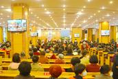 感恩赞美会前,大连市基督教三自爱国运动委员会主席、泉水堂赵永刚主任牧师为主证道。他带领会众诵读圣经诗篇135篇的经文:“你们要赞美耶和华!你们要赞美耶和华的名! 耶和华的仆人站在耶和华殿中,站在我们 神殿院中的,你们要赞美他!”而后,赵永刚牧师为主证道。他分“我们要一心称谢你”、“我要向你的圣殿下拜”、“感谢神的应许”等三个题目,回顾了近一年来教会和信徒们所经历的主的恩典,阐述了我们为什么要感恩和一个怎么样感恩等,全体会众怀着敬虔的心,在感恩的祷告中聆听神的圣言,接受传道人牧养。