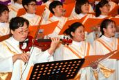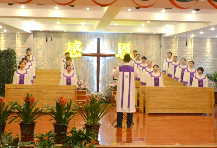 泉水堂的感恩节赞美活动在百余人的联合诗班《献上感恩》大合唱歌声中开启。弟兄姊妹向三一的神献上《收成感恩歌》、《你的恩典不离开》等舞蹈、律动、手语舞、大合唱等十二个节目。老年弟兄姊妹热情饱满、精神矍铄,参加演出的同工最大的年龄84岁,有的团契的合唱指挥也72岁了;青年同工朝气蓬勃、节奏充满活力。大家载歌载舞、赞美之声震撼,全场在圣灵充满中掌声不断,献给荣耀的万王之王、万主之主。