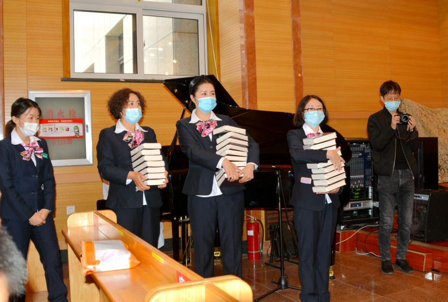 证道结束后,有25位弟兄姊妹接受呼召,勇敢地走到圣台前,跟着赵永刚牧师向神做决志的祷告,成为主内的新人。教会向他们每个人赠送了最宝贵的礼品——《圣经》。