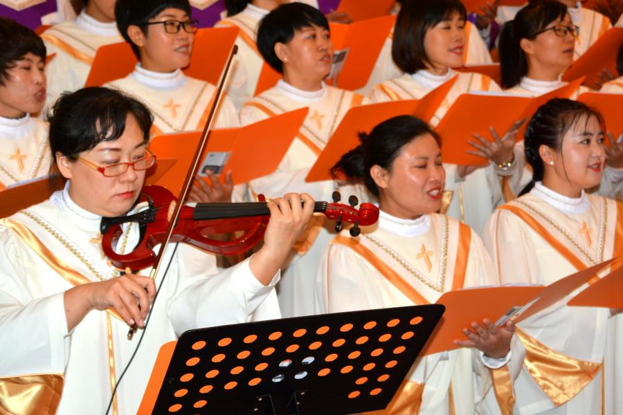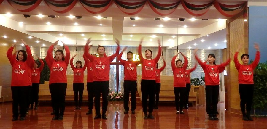 感恩赞美会的最后,赵永刚主任牧师登上圣台,带领会众高歌赞美诗,全场会众起来举手,歌声直达云天。有不少弟兄姊妹留下感恩的泪,笔者也被深深感动,两次落泪,感恩之心油然而生、向主献上。