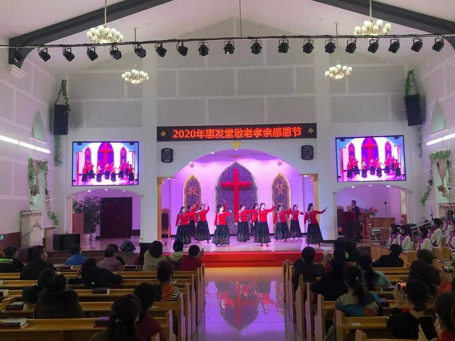 讲道之后,惠发基督教堂各个部署演出了以“敬老、孝亲、感恩”为主题的节目。其中有舞蹈、圣剧、情景剧等,不仅内容丰富多彩,紧扣“敬老、孝亲、感恩”的主题,而且服饰和音乐都具有鲜明的中国文化元素,欢乐的气氛感染了信众。大家都说,这次过感恩节真不一样,虽然是以“敬老、孝亲”为主题,但应该感恩的事太多了。我们感恩上帝的保守与看顾;也感恩在党和政府的领导下抗疫所取得的成就;我们要珍惜来之不易的生活,积极投入社会主义建设,在新时代做光做盐,荣神益人。
