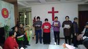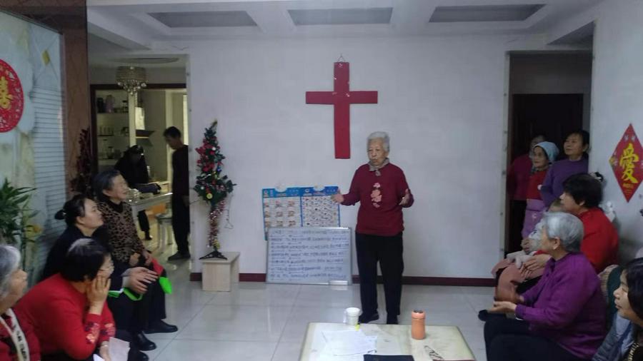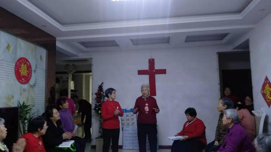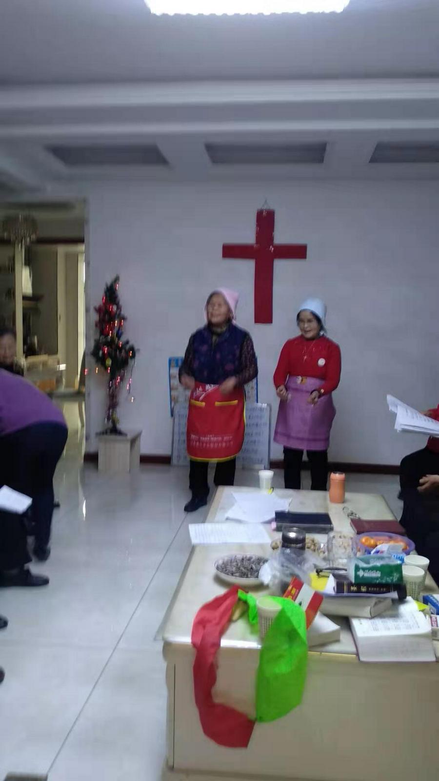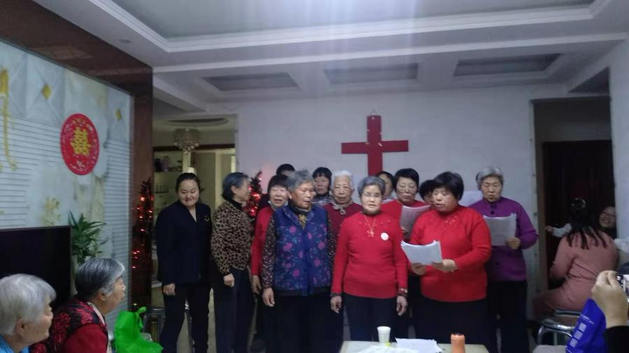 尽管连日降温略感寒意,两点多钟大家就陆续赶到,一起唱诗赞美,一首首感人的圣诗,唱的人心里火热。客厅正中的鲜红十字架格外引人注目,一旁的小圣诞树灯光闪烁,增添了节日气氛。虽然大多是白发苍苍的老年人,但从神而来喜乐的笑容挂在每个人的脸上。