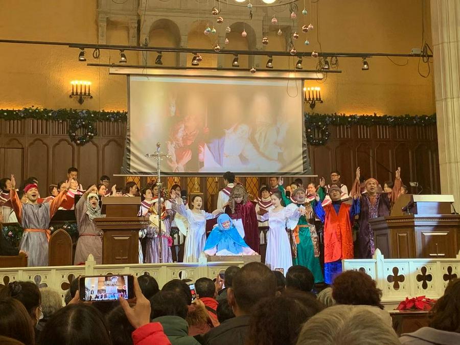证道结束后,教会同工预备了舞蹈《奇异恩典》和圣剧《有一婴孩为我们而生》,带领会众一起欢庆圣诞,最后礼拜在《普世欢腾歌》中结束。礼拜结束后,每个人还领到了一份2021年日历作为圣诞节礼物。