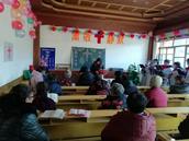 聚会前首先进行了升国旗仪式,在雄壮的国歌声中,五星红旗冉冉升起。会众齐唱《圣哉三一歌》《欢乐佳音歌》,诗班献唱了《圣诞感恩歌》《马槽歌》,牧区负责人以福音书经文介绍了圣诞节的意义,对大家进行劝勉教导。随后周边活动点以村为单位献唱诗歌(每村献两首)。大家尽情歌唱,让赞美的歌声直达神的宝座。最后在祝福祷告声中圆满结束,还发放了圣诞礼物,大家互送平安。