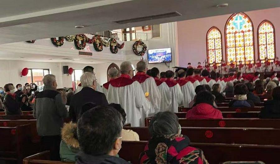 2020年12月23日,上海怀恩堂于下午2时举办了圣诞崇拜音乐赞美会。提前一个多小时,教堂门口就已站满了等候的信徒,在服侍人员的帮助引导下,扫码、测温……此外还有重要的一关——需要持有固定预约卡。
