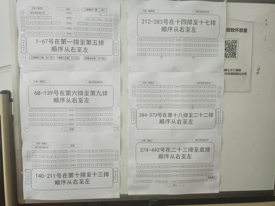 很快距离崇拜开始只剩十几分钟,前来参加的信徒也基本入场完毕。因为今天是工作日,堂内还剩余一部分空座,最后我们这些因为各种原因没有带卡的人也前去登记领了座位号,顺利进入了堂内。