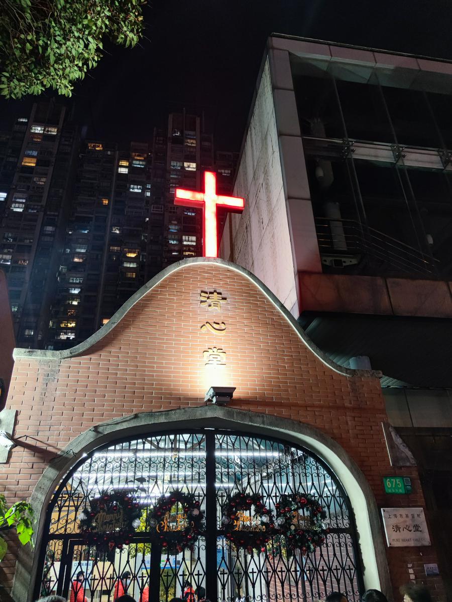 寒冷也挡不住信徒们火热的心,24号平安夜的晚上,天刚刚昏暗下来就已经有信徒在教堂门口徘徊了。位于大昌街30号的清心堂,早早就点开了室内的灯光,尽管尚未开门,由内而外洋溢的快乐气氛都足以引路人驻足拍照。更不用说提前到来的信徒,见教堂尚未开门,苦寻无果后竟绕到后门探问,难掩心中热切。