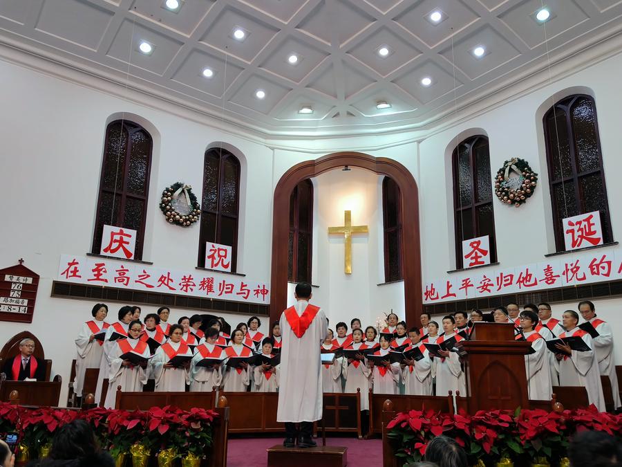 最后,诗班又为观众带来的三首诗歌《欢庆圣诞》《为何我要歌颂耶稣》《奇妙平安由神来》。有趣的是,当活动终了,临近退场时熟悉的旋律奏响,是《生日快乐歌》,只不过领唱将“祝你生日快乐”改成了“祝你圣诞快乐”,大家喜气洋洋一起庆祝圣诞,也是纪念主的生日。