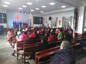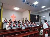 上午9:00,福临堡教会欢庆圣诞的崇拜聚会,在陈伟教师代祷后开始了。首先上台的是福临堡教会诗班的献唱赞美。只见二十三位青一色的姊妹身着白色圣衣,依次慢慢走到台前排好队列。在钢琴音乐伴奏下,满怀对主的怀念深情献唱了《马槽歌》,接着又非常喜乐活泼的献唱了《普天同庆》赞美诗歌。别看她们里面大多是来自本村及附近村子的姊妹,但她们一个个唱起赞美诗歌来,那声音,那架势真不亚于城市教会献唱诗歌时的热情和劲头!