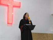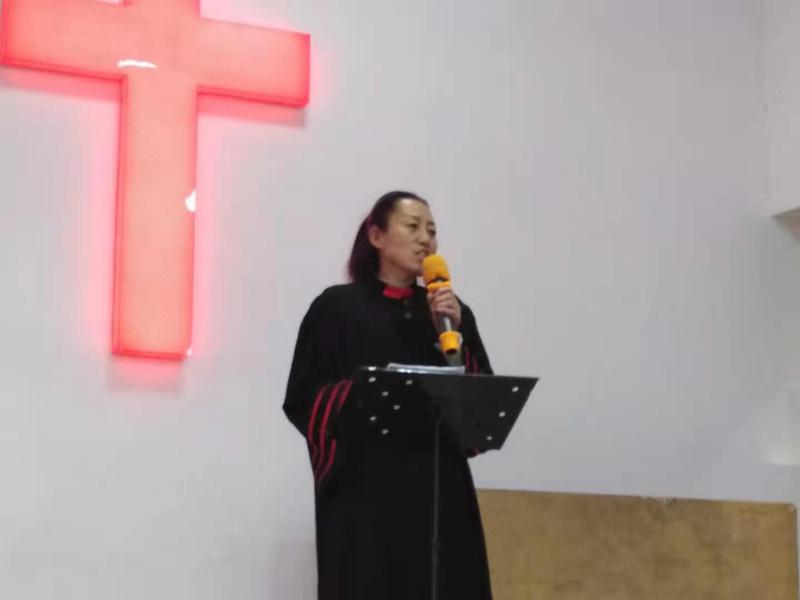 接下来,是杨水霞姊妹证道。她以经文以赛亚书7章14节、9章6节为依据,围绕《他名称为奇妙》的主题,用了半个多小时,讲了三大部分:一、耶稣奇妙的生;二、耶稣奇妙的死;三、耶稣奇妙的复活。整堂证道,言简意赅,通俗易懂。联系实际,紧接地气。她给大家简要描述了耶稣的生、死及复活的全过程,通俗地阐述了主耶稣基督通过十字架拯救罪人的意义。是啊,我们的主,降生在当年冰冷的马槽,是为着在今天让我们这些罪人的灵魂不再丧失,让我们脱去以往那身有罪旧衣,成为随主复活、有着属灵生命的一代新人。