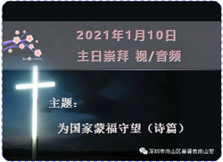 1月10日,深圳市基督教会南山堂在以“为国家蒙福守望”为主题的主日崇拜当中,主礼带领会众一起为国家面临的疫情挑战和人民的安康祷告。叶东升牧师在证道中分享了“耶稣受洗”,证道结束后的家事分享中也劝勉会众要尽到人当尽的本分,注重防疫,并为我们国家守望祷告。