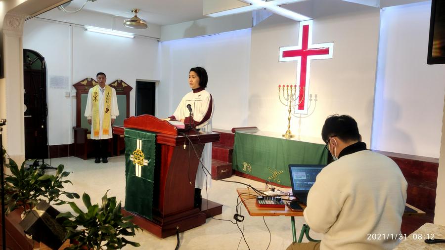 北海堂在二次疫情初期并没有暂停线下实地聚会。但是当教会接到市里停止聚会通知的时候,他们就把去年疫情时候用的网络牧养方法直接拿出来用了。就是在暂停之前把讲道的音频、视频全部录下来,经过后期编辑整理,然后上传到网上,到了聚会时间再发出去,组织信徒收听收看录像录音。