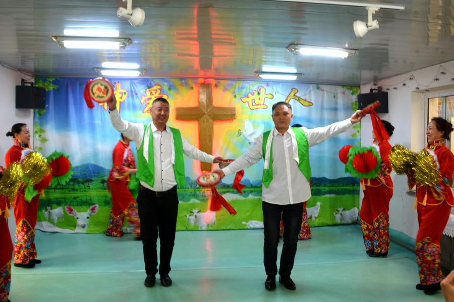 大孤山教会负责人马连圣教士带领弟兄姊妹们登台表演。虽然不是正式庆祝复活节,但是参加演出的同工们依然怀着敬虔的心同心合意把最好、最美的节目献给荣耀的主。这些节目有夫妻合唱、有母女合唱、也有自己编导的舞蹈等,观看彩排的信徒们喜乐、开心,把热烈的掌声归给上帝。一位八十六岁的老姊妹边看边随着节奏打着拍子。她告诉笔者,以前她也登台表演,现在年龄大了,只能当观众了;一位在用手机拍摄的、六十多岁的姊妹说:“这是疫情以来第一次看赞美的节目,演的真好!我们很高兴,要把视频和照片发给大家分享。”
