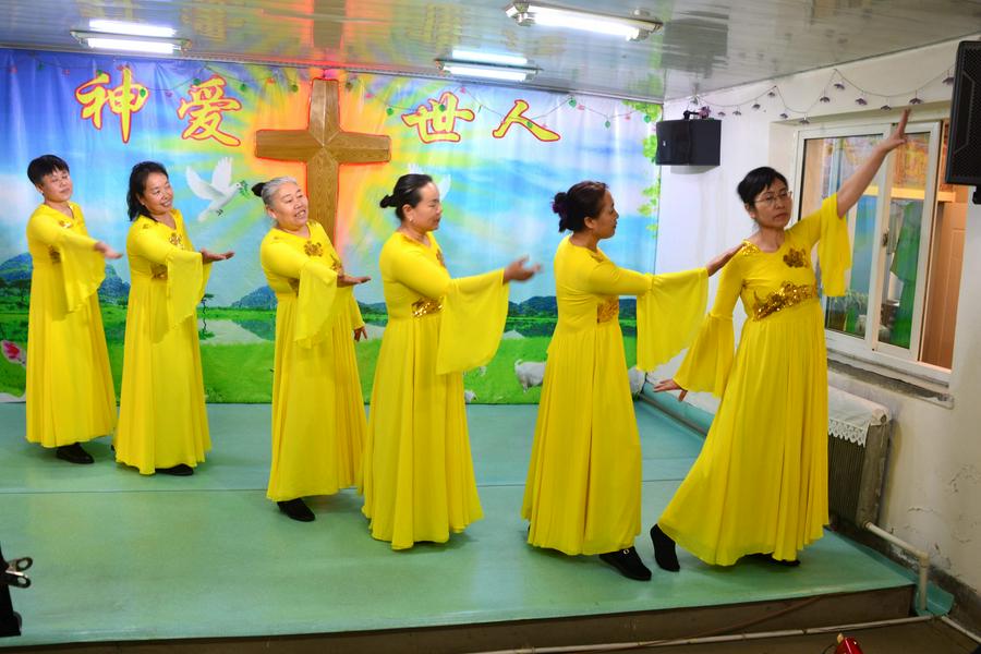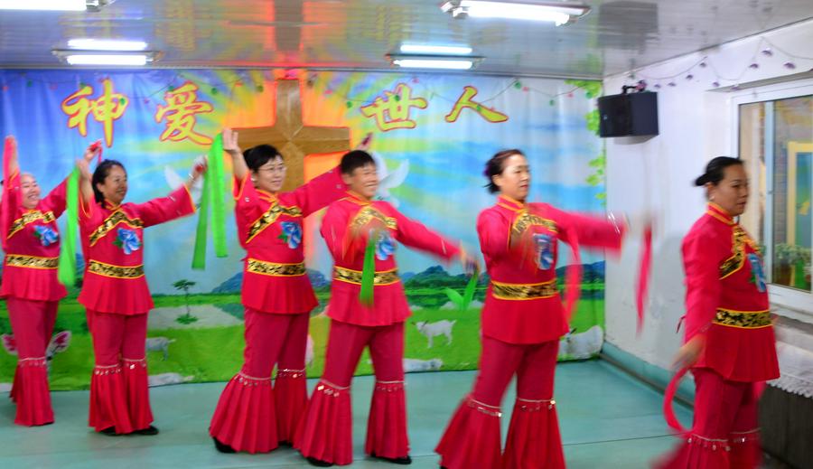 聚会结束后,教会的各个班组、团契把连续近半个多月准备的舞蹈、合唱、独唱、诗朗诵等共计十五个节目进行了彩排。