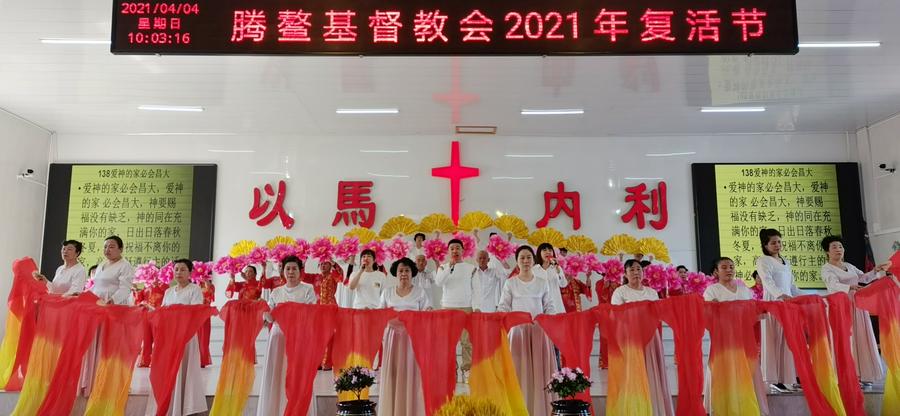 辽宁海城市腾鳌镇教会举行了复活节赞美会。敬拜赞美祷告之后,弟兄姊妹们穿着节日的盛装载歌载舞、赞美敬拜,感恩主耶稣的救赎,颂赞主耶稣得胜,赐给信徒初熟的果子。