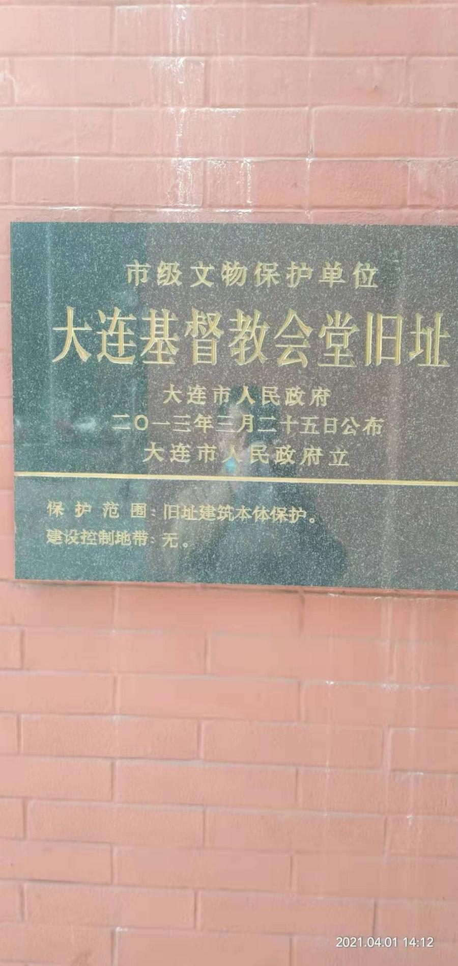该教堂于2013年3月25日被列为大连市人民政府市级的文物保护单位,被确立命名为“大连市基督教会堂旧址”。