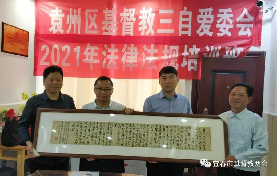 宜春市袁州区基督教“三自”爱委会2021年法律法规培训班于5月20日上午九时,在袁州城区西门聚会点开班。袁州区基督教“三自”爱委会主任唐吉文、名誉主任许财生、副主任贺伟全、秘书长黄虹、副秘书长杨建华、刘吉文和来自全区各乡镇街道的常委及片区负责人共二十多人参加了培训班,培训班由名誉主任许财生主持。