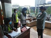 8点左右,弟兄姊妹从四面八方赶到十里铺教会。大家沿教堂北临街楼梯拾阶而上,在二楼主堂门厅口登记个人信息、测量体温后戴好口罩进入主堂。