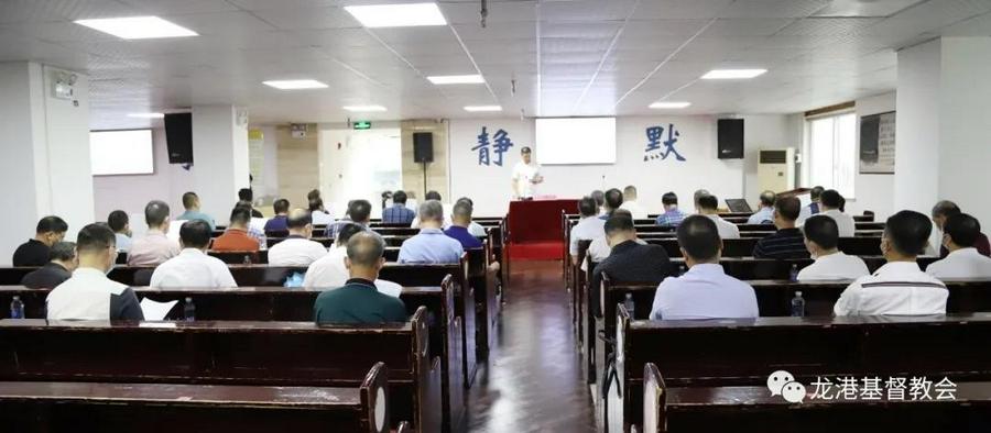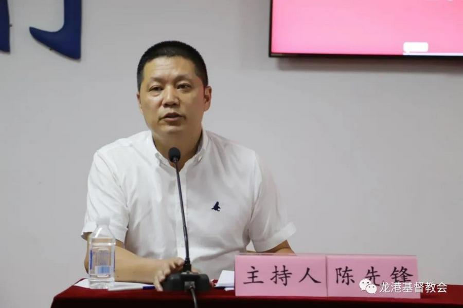 感谢主的恩典,龙港市基督教两会于2021年8月13日下午,在主恩堂召开疫情防控工作会议,来自市两会委员暨各堂点主任、长老参加,会议由副主席兼秘书长陈先锋同工主持,在诗歌和常务副会长蔡寿星长老祷告中开始。